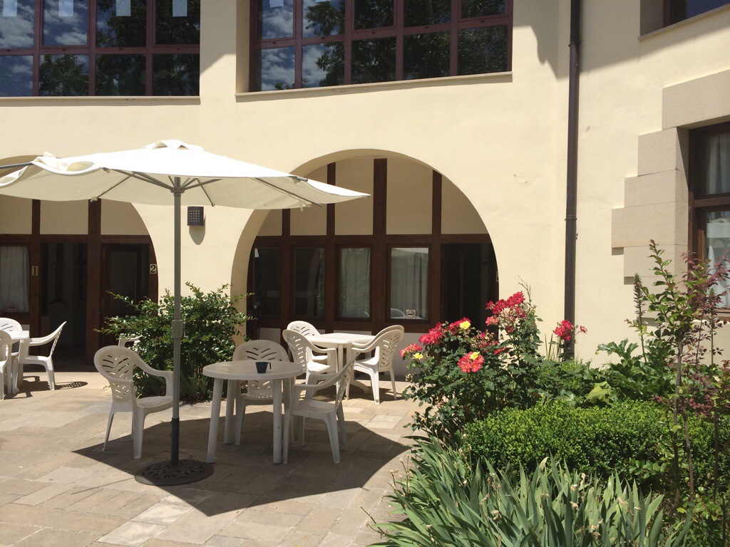 How far have I walked today? I think I’ll keep that a secret for now and tell you how far I haven’t walked. I haven’t walked 25 km. And I ended up in paradise, the Mirabel Roncal. It has a walled garden from long, long ago with museum like lawn ornaments, beautiful rooms, tables and gardens everywhere, and a great pilgrim totem, a turtle pond.