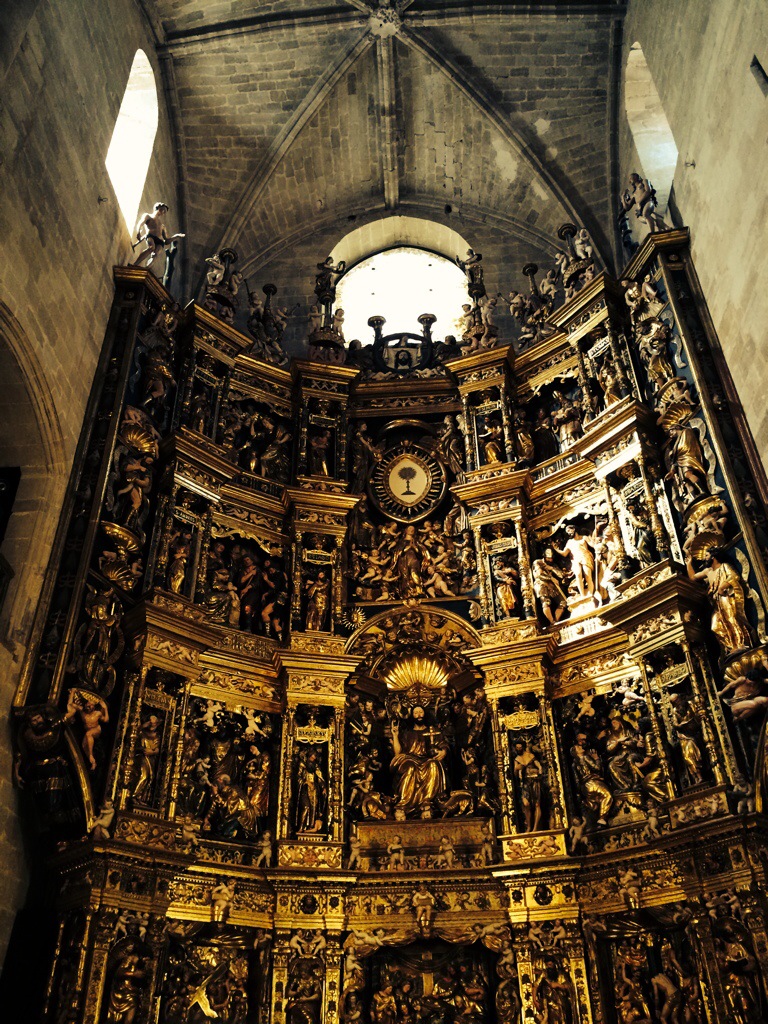 By that time it was late in the morning, so I decided to take the bus to Santa Domingo. And I’m so glad I did. It turned into a completely relaxed, pleasant day. I had one of those extended lunches at a cafe facing the cathedral. I went to the small prayer meeting offered by the brothers who ran the albergue. I did laundry and visited the backyard chicken coop that supplies the cathedral chickens, who are not even on ground level but in a ridiculously backlight sort of alter a story high so you can’t even interact with them. Now that was disappointing, but I went back to talk to the patio chickens.