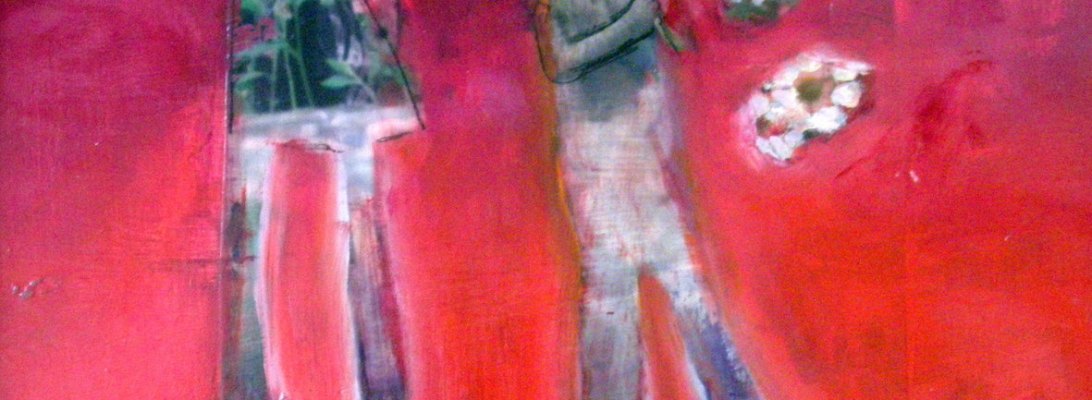 Okay, I had a start: two figures in a sort of journey. The second painting was Nature Walk, at the top of the blog. A giant gorilla peered over the horizon at the two small figures enjoying a stroll, and the Mummy got a cigarette. I loved the thick, greasy, slippery feel of the oil paint, and the sharp smell. Shapes and images surfaced and submerged. It was mesmerizing. It took a long, long time. Apply, rub away. Add, subtract, change, cover, lose it, reclaim it: hide-and-seek with images.